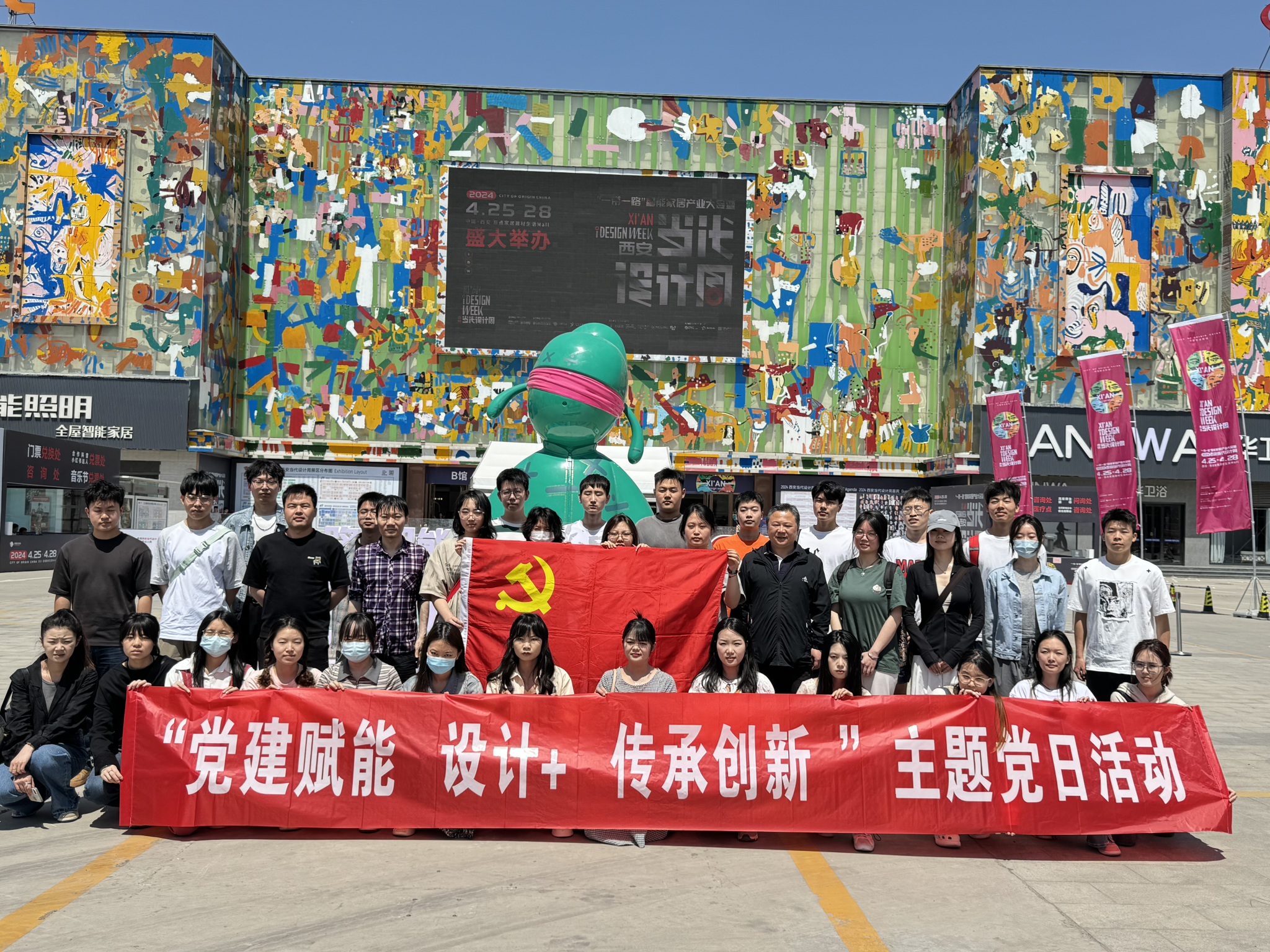 学工办主任蔡洋、辅导员束坤翼带领学院党员代表及第二十期入党积极分子40余人开展“党建赋能  设计+  传承创新”主题党日活动,师生前往咸阳市泾阳县参观2024西安当代设计周展览并听取报告。