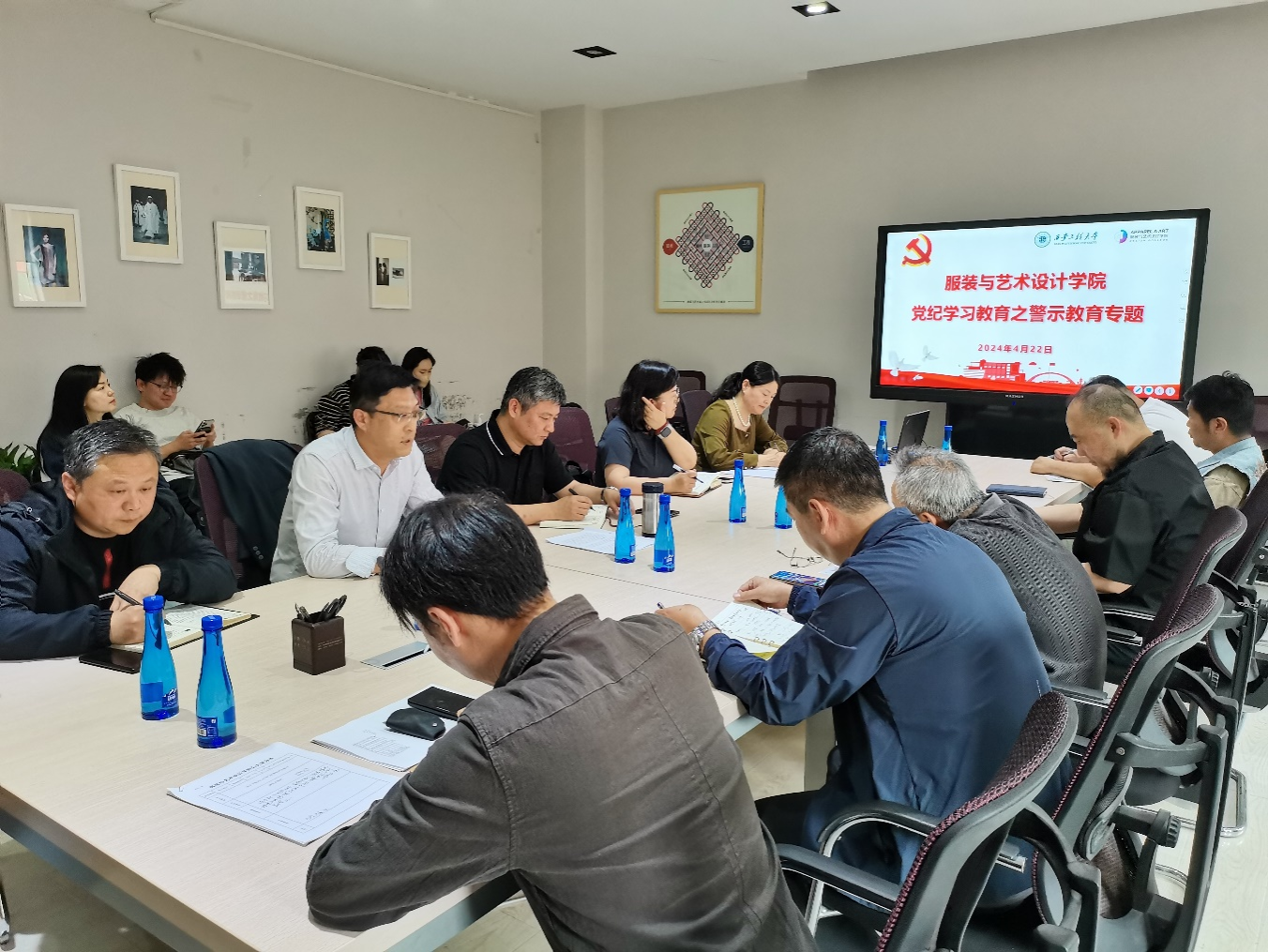 在学院三楼会议室召开党纪学习教育之警示教育专题会。会议由院党委书记苏博主持,学院班子成员、党委委员、各系办中心主任、院长助理、校友会秘书长等人员参加会议。