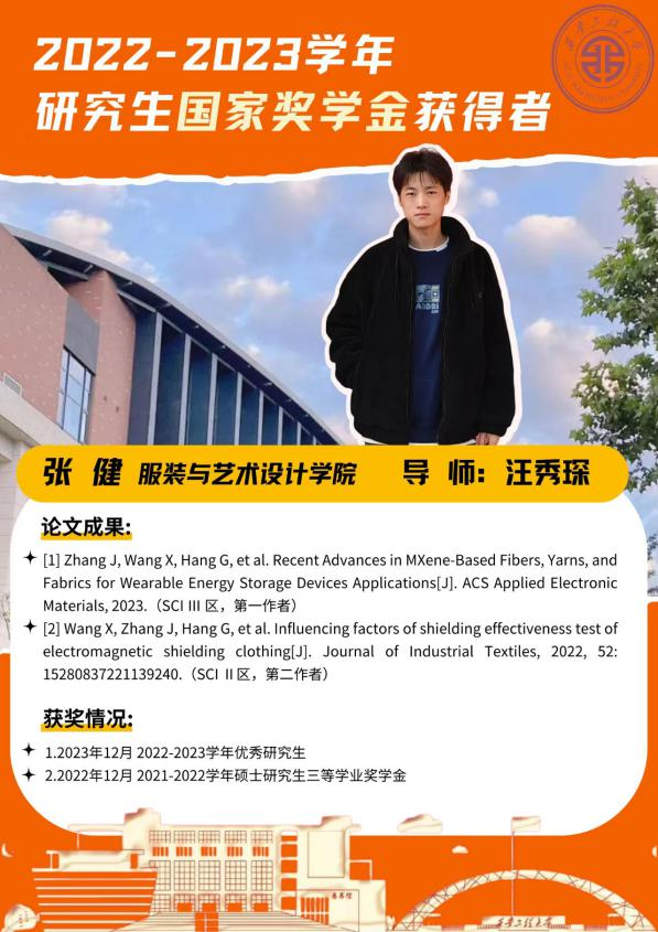 2023年,澳门新葡京 在研究生培养上坚守立德树人根本任务,教育教学持续获得骄人成绩。其中2021级研究生张健、李旻玥、杭格格、黄霞、赵晨五位同学获得研究生国家奖学金。现将三位同学的事迹简介与取得的成绩做风采展示如下,期望广大同学以优秀同学为榜样,勤奋学习,踔厉奋发,勇毅前行,取得更大进步与成绩。