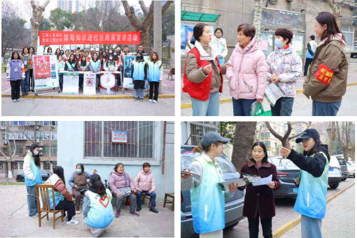 青年志愿者协会的20余名青年志愿者前往西安工程大学西家属区社区,开展以“远离毒品,健康生活”为中心的禁毒专题活动。学院团委副书记黄博宇和辅导员邢烜毓老师在现场进行禁毒知识指导。本次活动旨在向大家传授辨别新型毒品的方法,志愿者们通过路演宣讲与社区居民服务的活动形式,介绍毒品种类和危害,以增强公众的识毒、防毒、拒毒防范意识,并宣传党和国家的禁毒工作方针与政策。