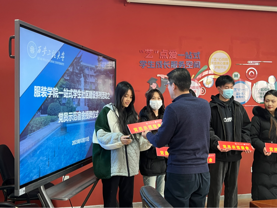 党委在学院“‘艺’点爱一站式学生成长服务空间”对前期通过申请评选的党员示范宿舍36间举行授牌仪式。院党委书记苏博、副书记郭欣欣、副处级组织员吴艳杰、辅导员王盼以及学生代表40余人参加活动,郭欣欣主持活动。