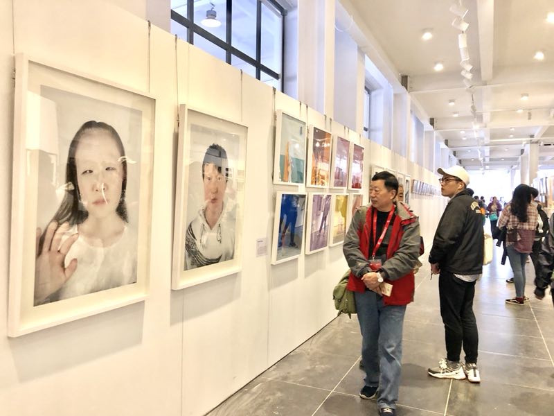 游客观看摄影作品