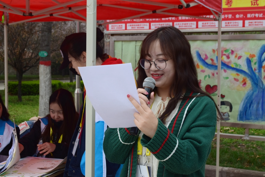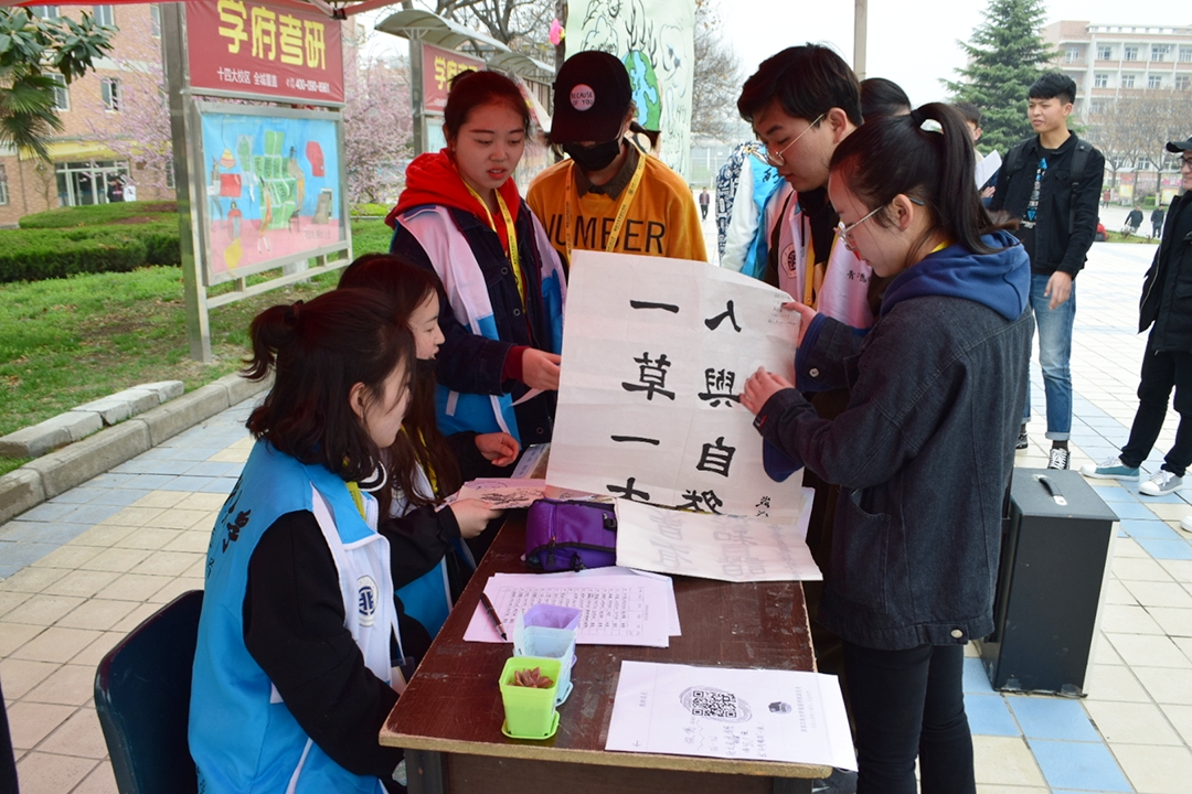 青分队在临潼校区中心广场开展了第十一届志愿者文化节“与绿色相约,与环保同行动”主题志愿活动。