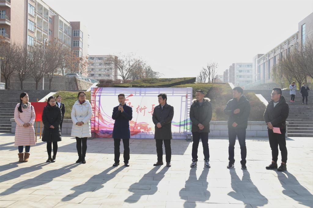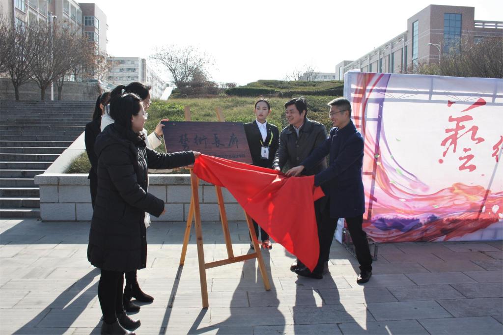 仪式开始,王志老师在致辞中指出,校园文化建设离不开广大师生积极参与,我校从“十二五”至今一直提倡校园文化建设工程,要形成制度、精神、文化、行为实践四大层面的校园文化建设。他强调实践是学习的重要部分,希望该活动能够成为校园文化建设的重要部分,更是起点高、持续时间长的活动。随后由王志老师和张慧老师为“艺术长廊”揭牌,并合影留念。