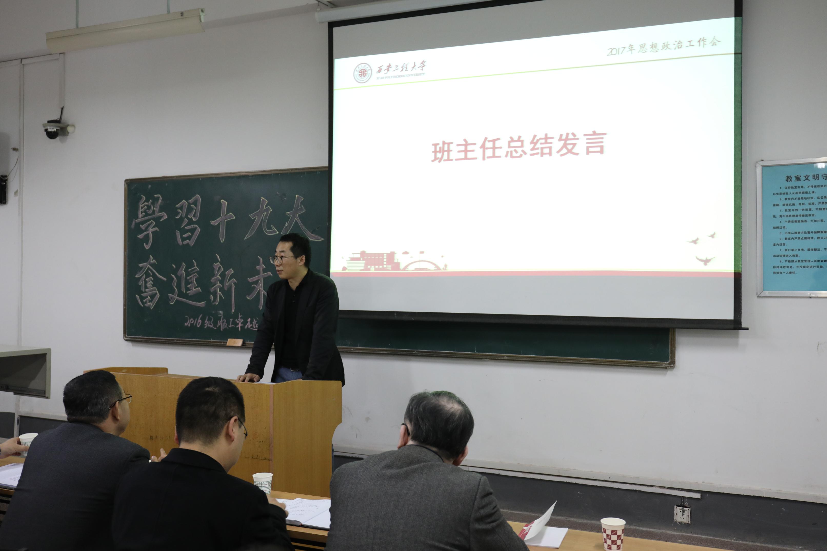 主题班会上,班级班长、团支部书记对班级第一学年班级思想教育、学习成绩、社会工作和团支部工作情况分别进行了总结汇报。4名同学分别从就业、考研、出国、创业等四个规划目标进行了交流。日常工作班主任冀艳波副教授对班会进行总结点评,并从班级思想、学风、社团活动、未来规划及安全稳定等方面提出建议和要求。