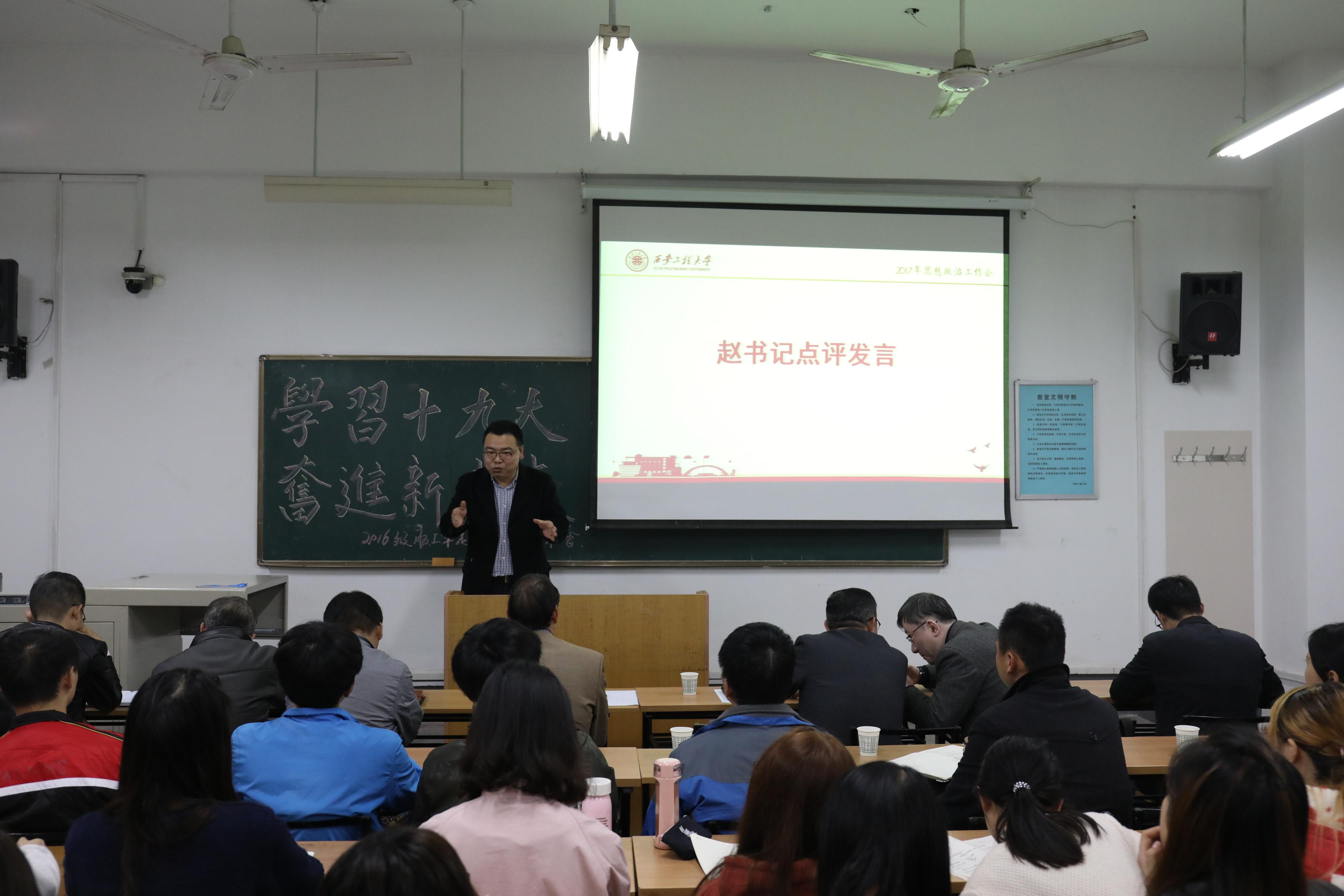 分管学生思想政治教育工作的校党委副书记赵小峰参加班会,他表示为了深入了解同学们的学习生活情况,听取同学们对学校教学管理等各方面工作的意见建议,更好的服务同学们成长成才,同时,为做好十九大精神宣传贯彻和基层党支部建设,根据校党委安排,校领导分别联系基层教工、学生党支部和学生班级,其中校领导联系并担任班级班主任的,该班级配备两名班主任,其中一名负责班级日常工作。下一步,学校将充分挖掘发挥教授、博士、青年教师在学生思想教育引领作用,逐步构建起学校全员、全方位、全过程育人的体制机制,始终坚持立德树人、以生为本,把全国、全省高校思想政治工作会议精神落到实处。随后结合十九大精神和社会发展对人才需求,对同学们提出三点希望:一是学好专业知识,增强专业自信,打牢服务社会国家的本领;二是建立同学成长档案,积极开展各类活动,营造优良班风;三是关心关注学校发展,以主人翁的精神对学校工作多提意见和建议。