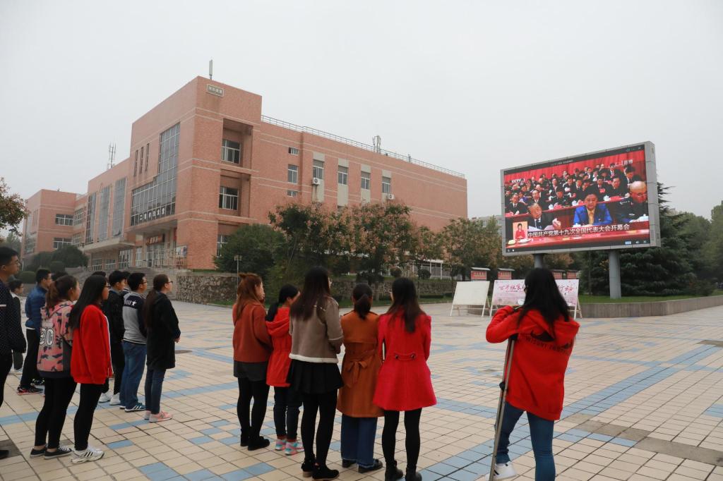 组织教职员工、学生党员、学生干部在金花、临潼两校区集中观看十九大开幕式。