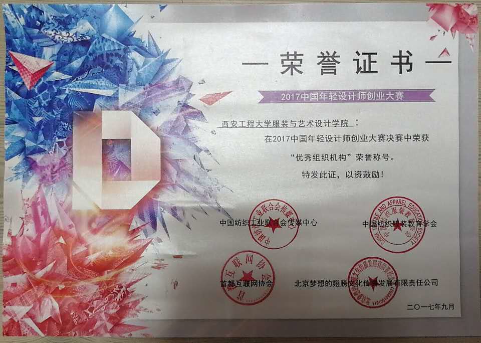 荣获2017中国年轻设计师创业大赛“优秀组织机构”荣誉称号。