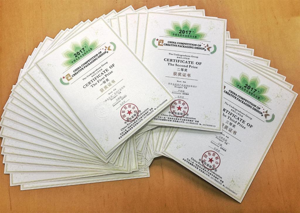 由中国包装联合会主办的中国包装创意设计大赛立足全国,面向世界。大赛宗旨是推动和促进包装革命的发展,促进世界包装技术的进步;鼓励创新、创意设计,促进生产,改善和提高视觉平面、包装工艺、工业制造等相关设计的优化组合。自2010年举办至今,已经连续举办了七届。本赛事是中国包装界权威赛事,亦是当前中国包装行业、包装教育界、视觉平面设计教育界备受瞩目,并重要参与的专业竞赛活动。中国包装创意设计大赛专家评审团规模庞大,评审分为初评、复评和终评。评审实施网络全面评审,初评由20组评审专家评审,每组至少有3位相关专业人员评审,其20组分布在全国不同地区,以避免地区差异对作品的误判。评审均由相对专业的专家评审,主要来自于中国包装联合会专业委员会及全国各地的相关专家、教授、学者、设计师,也吸收相关院校专业团队参与评审,所有作品均经过极为严格和规范的程序评出。本次大赛取得的优异成绩也是视觉传达系在专业教学中的成果体现。