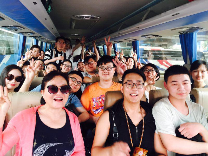15个小时的火车,我们从西安到了济南,刚下车,我们就看见了安莉芳的姐姐来接我们。大家坐上安莉芳集团接我们的大巴去往山东工业园,在车上内衣班的学生多才多艺,能歌善舞,气氛十分愉悦。