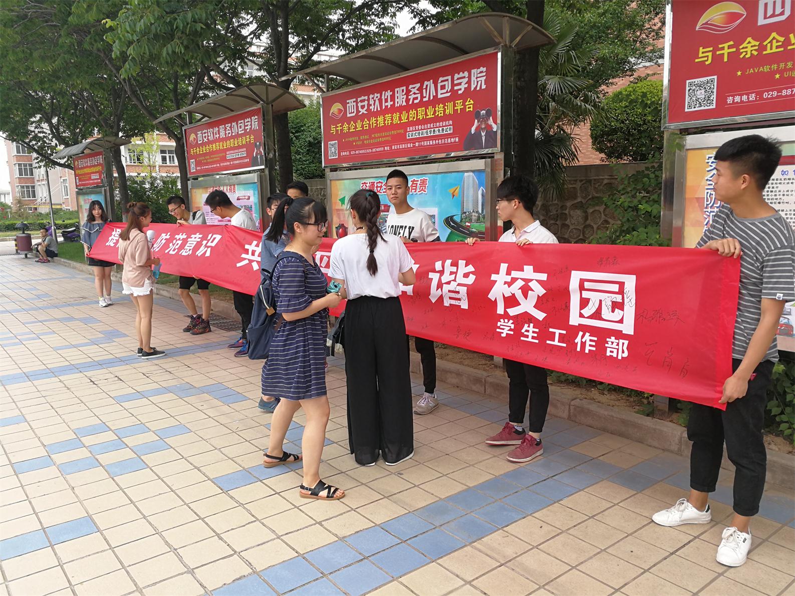 承办的“西安工程大学学生安全防范知识宣传展暨现场签名活动”在临潼校区中心广场举行。