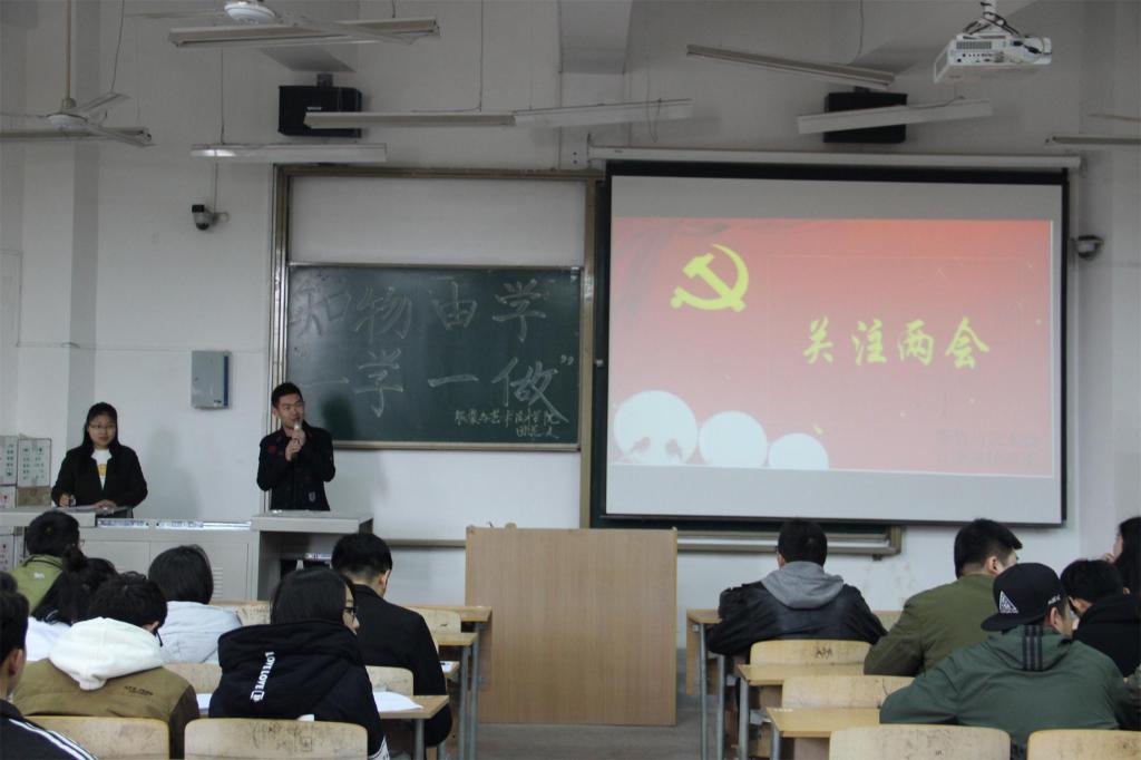 为贯彻落实“一学一做”,引导当代青年大学生关注时事、认真学习“两会”精神,2017年3月16日中午澳门新葡京