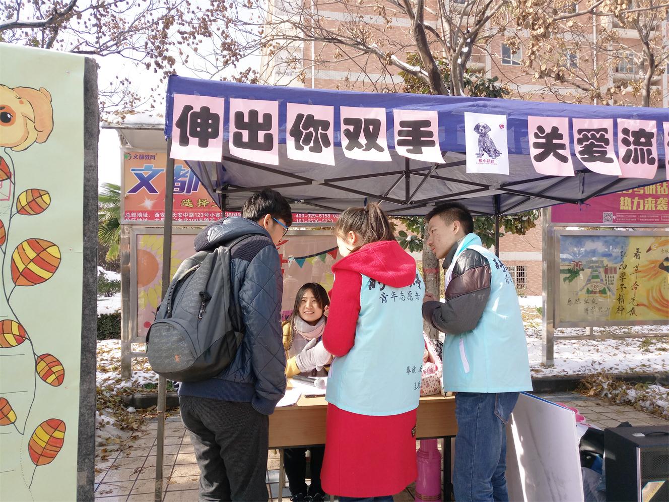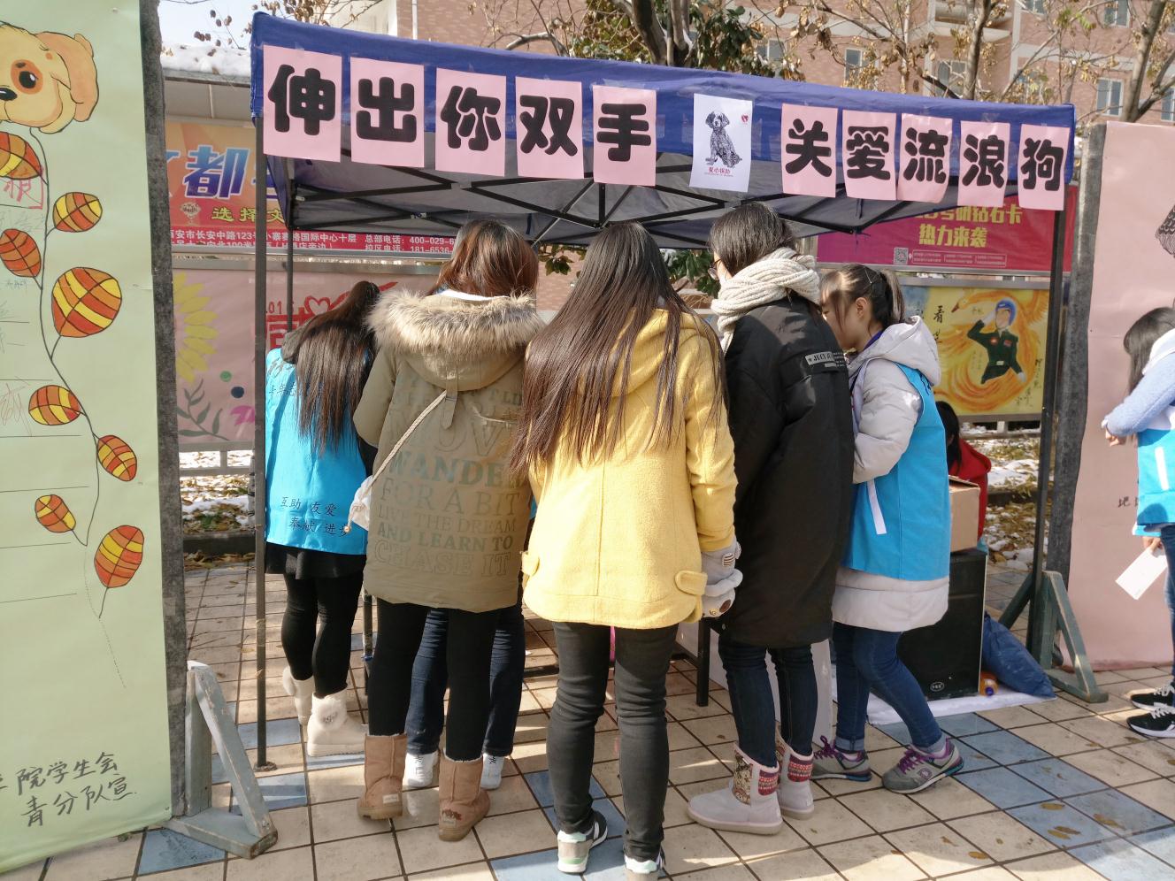学生会青分队在部长李存正、牛玉宁及于思含的带领下于中午12点在中心广场开展“伸出你的双手,关爱流浪狗”活动。