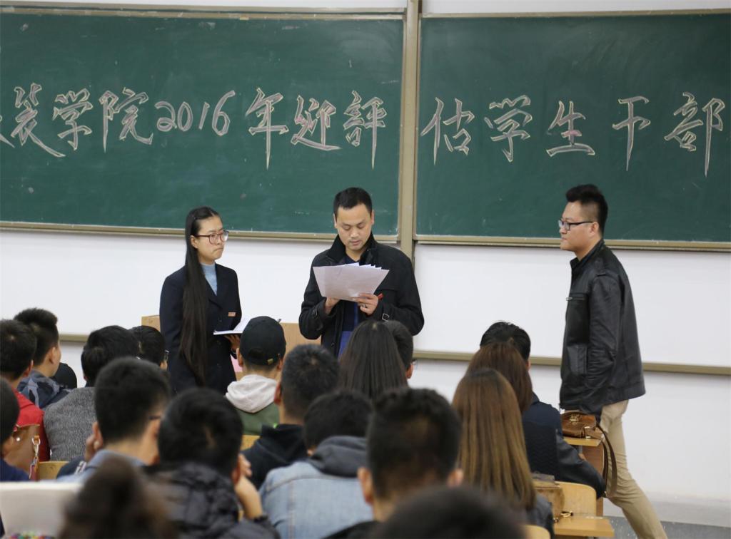 2016年迎评估学生干部工作会。出席此次会议的老师有张峰、黄博宇、孙晨倩、邵巍,参加会议的有14、15、16级班委、团学科干部和办公室助理。