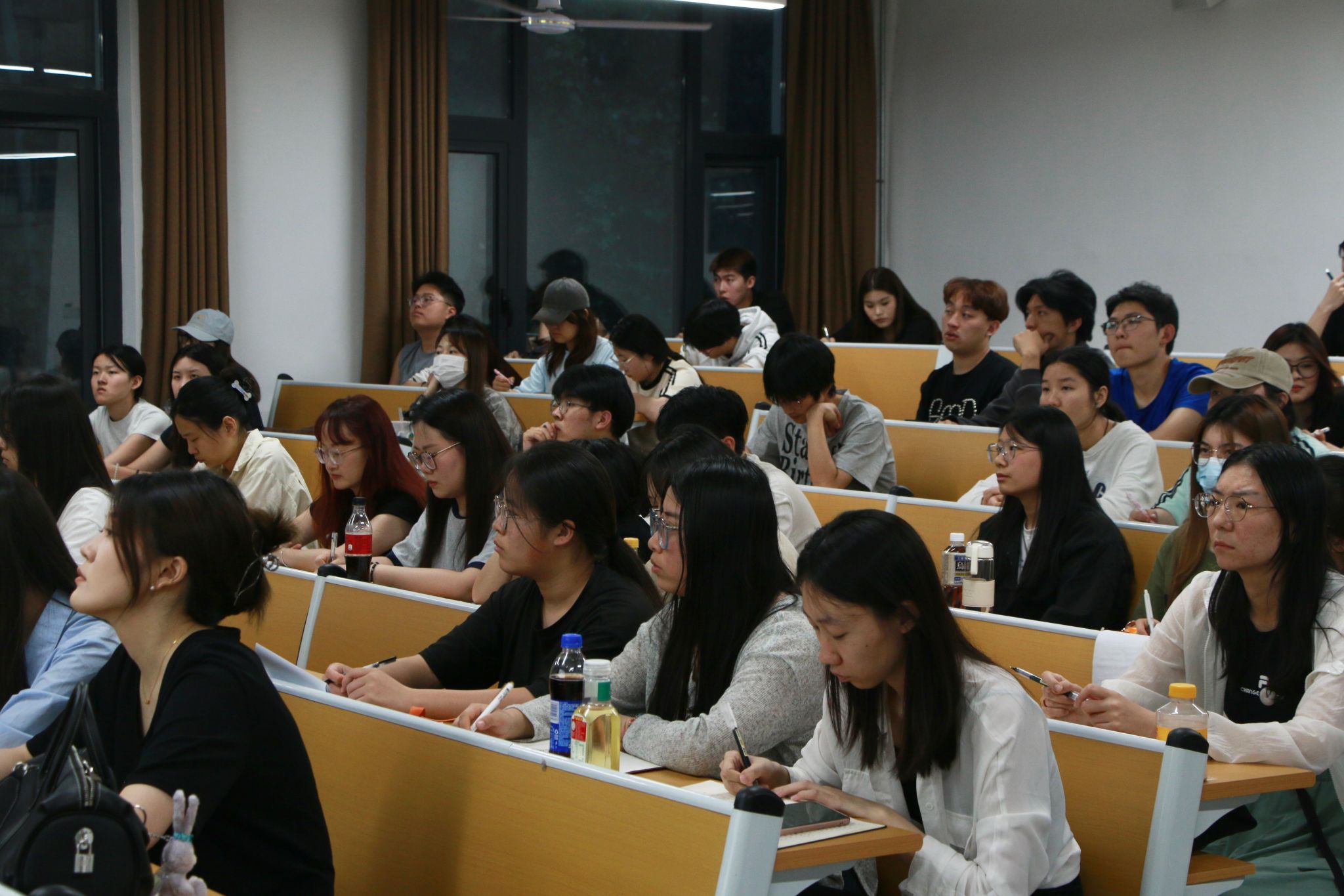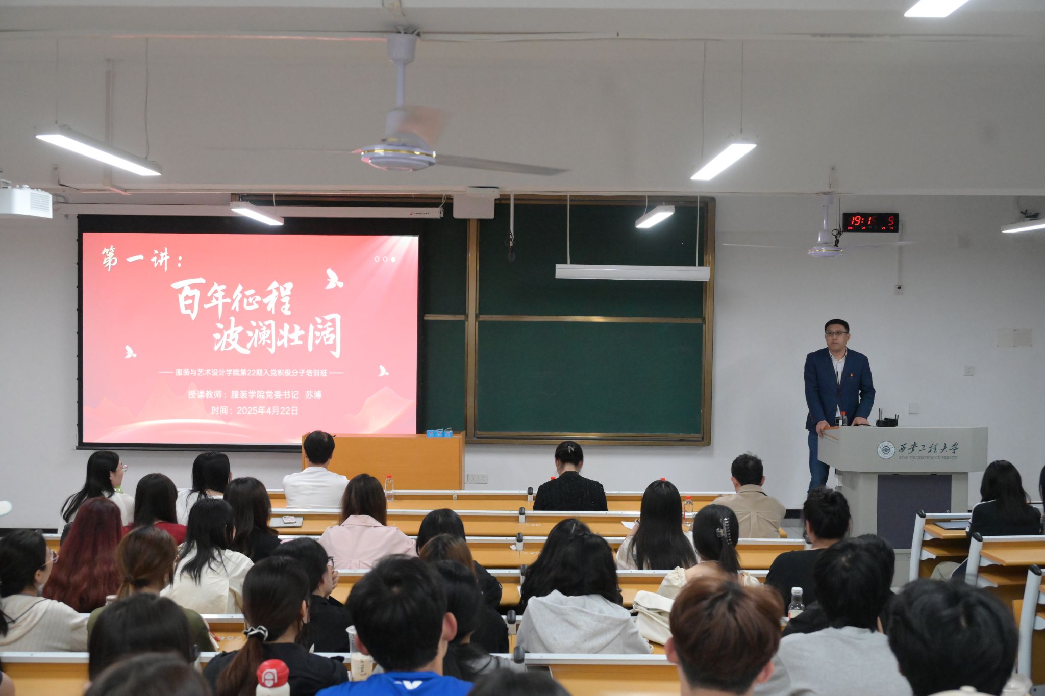 专业思政促融合:4月25日晚,副院长王峰作“新中国美术创作中的‘人民观’”专题讲座,通过多媒体展示多幅经典作品:解析版画《豆选》中的"草鞋民主"细节;解密油画《开国大典》背后的政治寓意,引导学员在设计创作中融入"人民性"表达。蔺晓珣在授课中提出"三个转化"要求:将理论收获转化为专业创作的语言,将思想提升转化为服务同学的实践,将入党愿望转化为持续进步的动力。