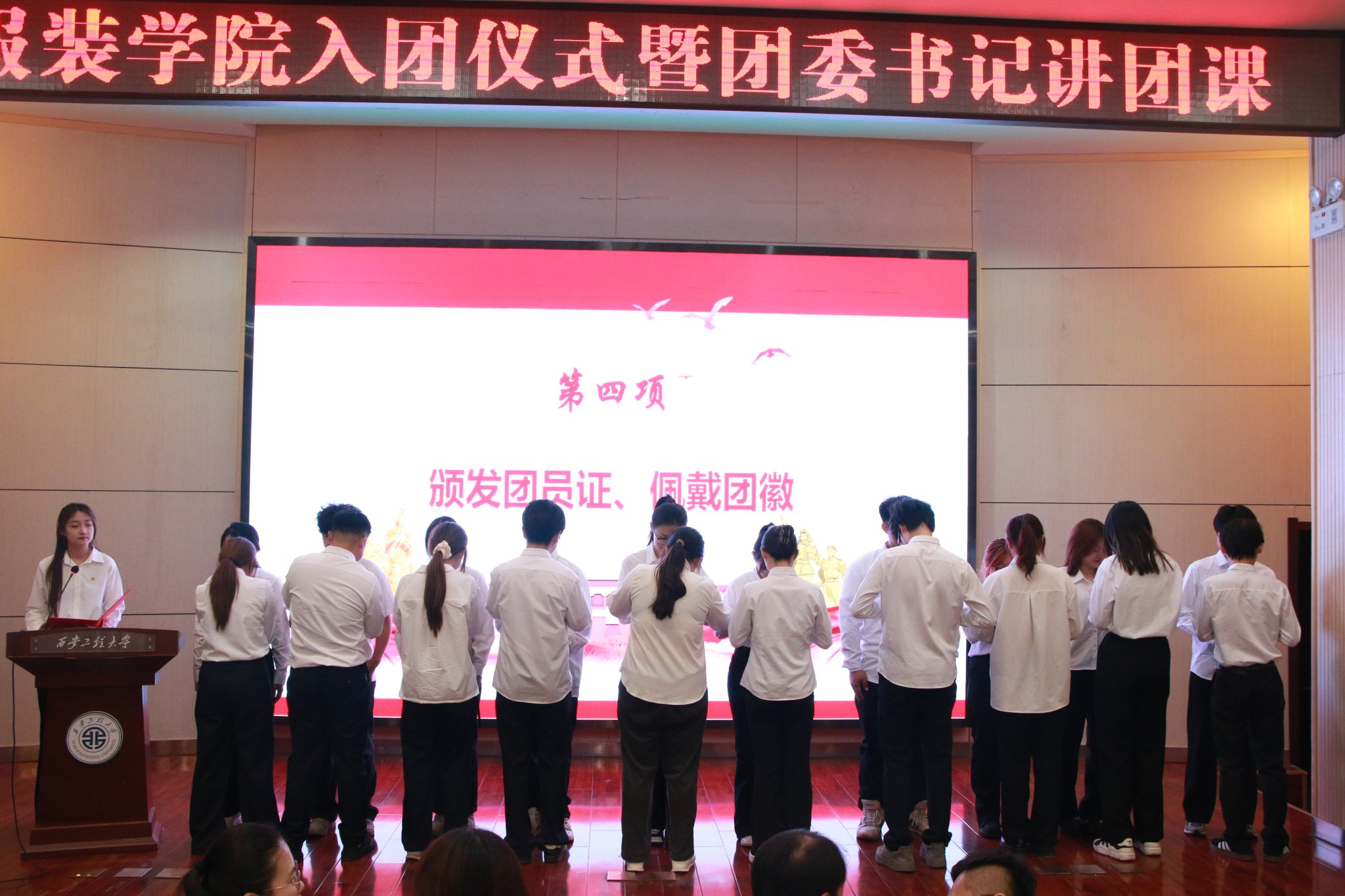 (颁发团员证、佩戴团徽,孙晨倩带领新团员宣誓)