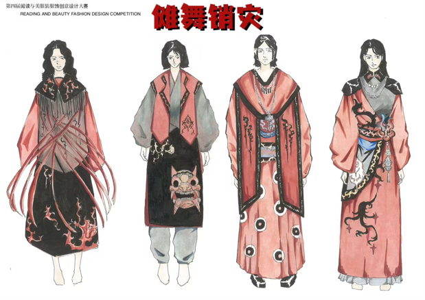 获奖作品亮点纷呈:李小璐同学的作品《煜时欢》(二等奖)巧妙融合传统与现代,以创新的色彩与廓形演绎主题;何羽菲《千里江山》、叶小茜《创世纪》、熊斯遥《孤香·未尽》凭借对色彩的大胆运用与意境营造,共同斩获色彩设计奖;王昱欢《滕翠风华》与李婉祯《傩舞销灾》则通过将非遗技艺、民俗文化融入现代设计,荣获创意设计奖,彰显出深厚的文化内涵与独特创意。