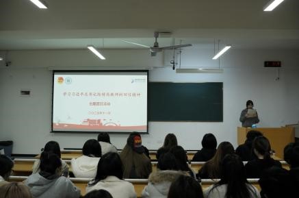 11月3日,服装设计7班、视觉传达2班在金花校区1-103教室联合开展活动,学院团委书记马薏雯老师参加,院团委组织部负责人赵晓菲主持;美术学专业全体团员在1-202教室同步开展活动。活动中,各班级均组织观看特岗教师主题纪录片,闫越老师坚守山区七年育人、刘玥老师创新乡村英语教学等扎根乡村、默默奉献的感人事迹,让同学们深刻领悟"特岗计划"在促进教育公平、赋能乡村振兴中的重要意义。随后,2024级服装设计7班马克清同学带领专题学习习近平总书记重要回信精神,梳理118万特岗教师的突出成就,解读总书记的深厚教育情怀与国家战略考量。交流环节,美术学专业团员代表赵子豪称特岗教师为"行走在乡村的教育英雄",倡议大家以其为榜样锤炼本领、强化担当,未来到基层贡献力量,真挚发言赢得持续掌声。总结时,赵晓菲鼓励同学们立足服装设计、视觉传达、美术学等专业特色,关注乡村美育需求,以专业素养助力乡村教育提质与文化建设。