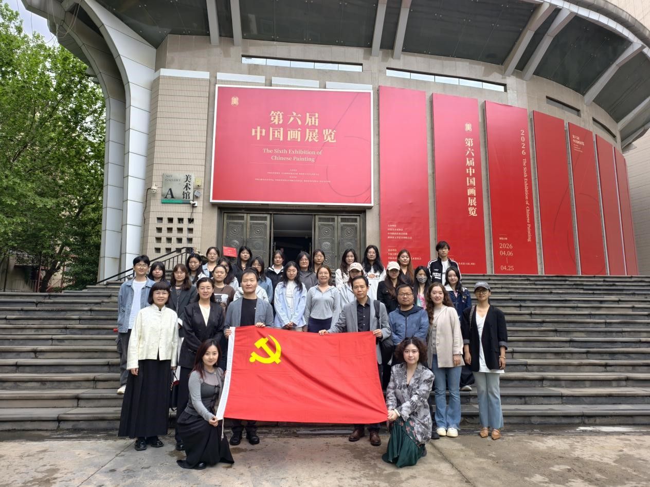 2026年4月16日上午,造型艺术系教工党支部组织造型艺术系教师、美术专业本科生、美术与书法领域研究生共50余名师生党员,赴陕西省西安美术学院美术馆开展“品时代丹青·筑文化自信”主题党日活动,集体观摩“第六届中国画展览”。