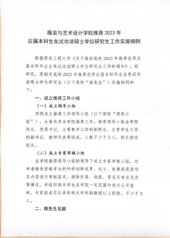 根据西安工程大学《关于做好我校2023年推荐优秀应届本科毕业生免试攻读硕士学位研究生工作的通知》,经研究,现制定澳门新葡京 2023年推荐优秀应届本科毕业生免试攻读硕士学位研究生(以下简称“推免生”)实施细则如下: